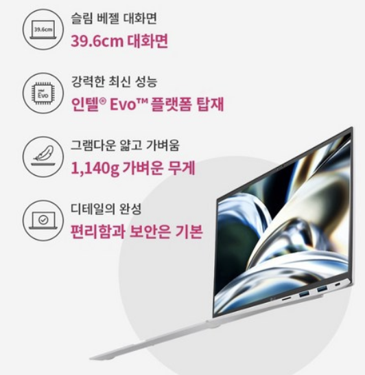 | LG 그램 15Z90Q-GR50K | 1,499,000원 | 13세대 인텔® 코어™ i5-1340P | 16GB | 512GB | 15.6인치 WQXGA (2560x1440) | 약 1.35kg | 최대 22시간 |