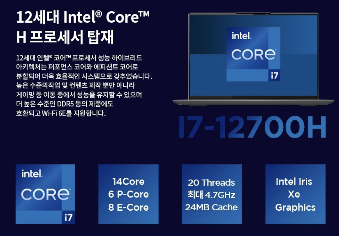 - 12세대 인텔® 코어™ i7 프로세서: 강력한 성능