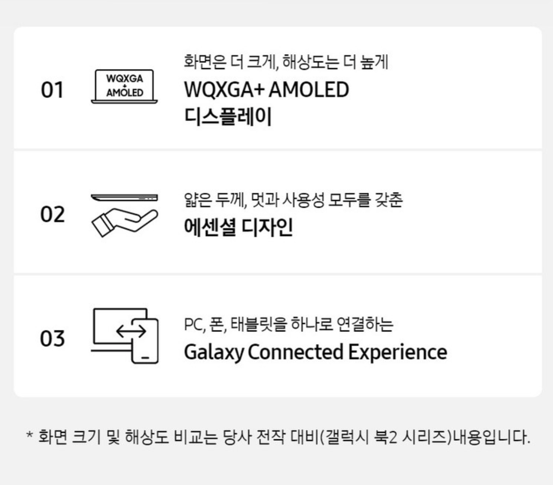 - 14인치 AMOLED FHD(1920x1080) 디스플레이: 선명하고 생생한 화질