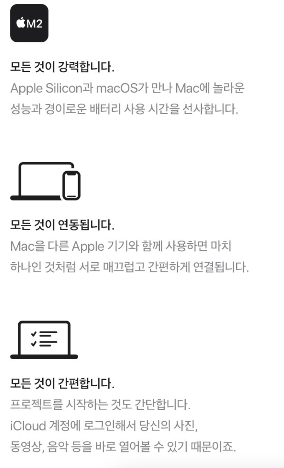 - M2 칩: 5nm 공정으로 제작된 애플 자체 개발 칩