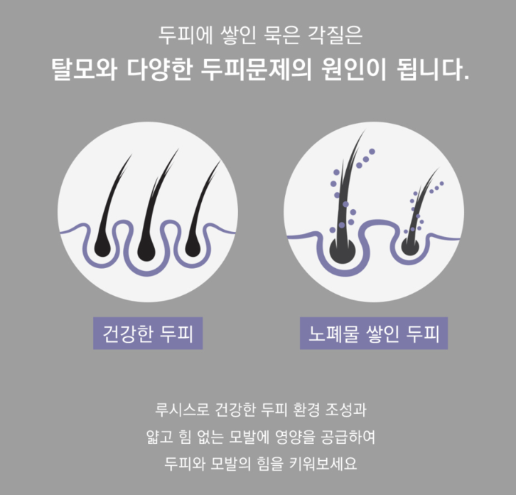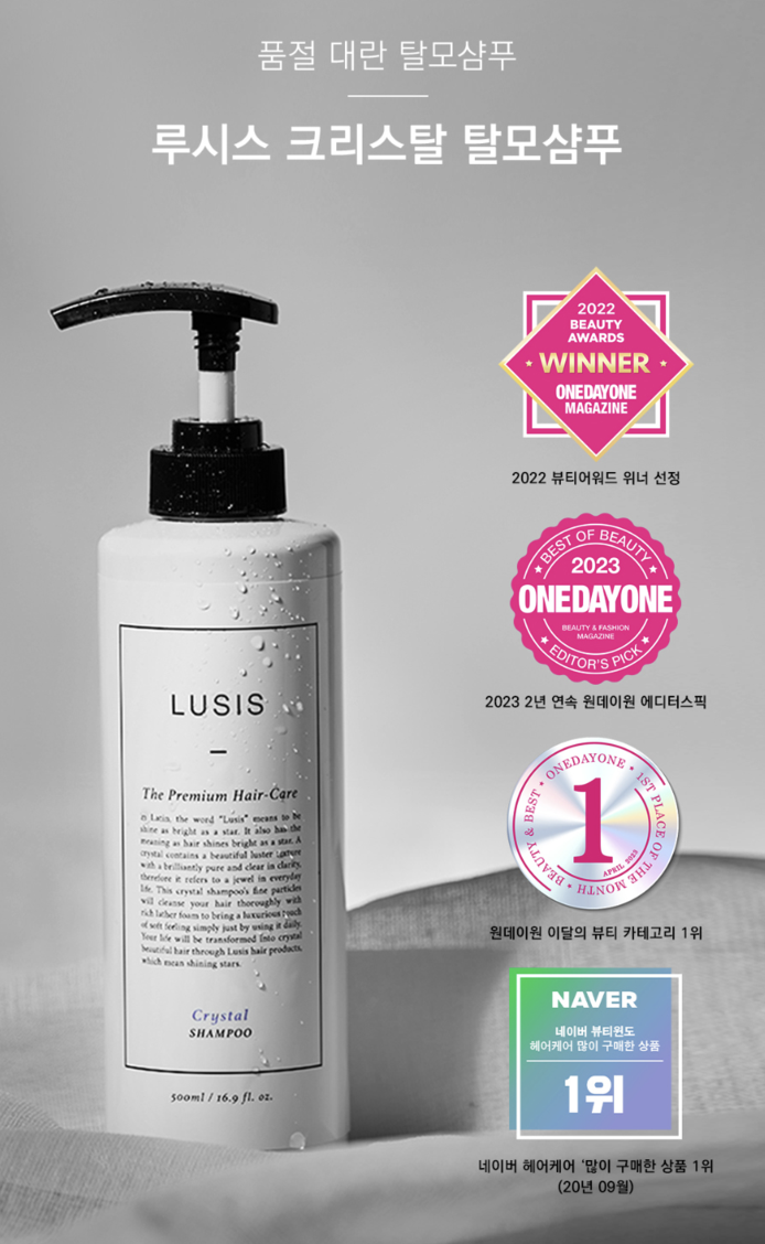 - 루시스 샴푸를 사용하면서 두피에 이상 반응이 나타난 경우 즉시 사용을 중단하고 전문의와 상담하십시오.