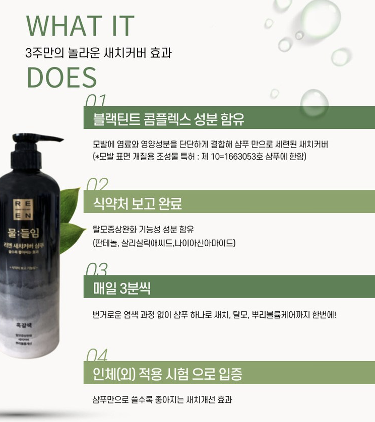 - 물푸레 추출물: 70% 함유, 모발 성장 촉진 효과