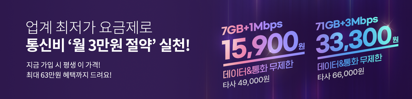 - 가성비 최고: 이동통신 3사 대비 최대 50%까지 저렴한 요금제로 통신비 부담 확 줄이기!