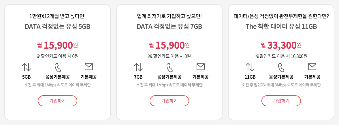 - 데이터, 통화, 문자 사용량이 적은 분들에게 적합합니다.