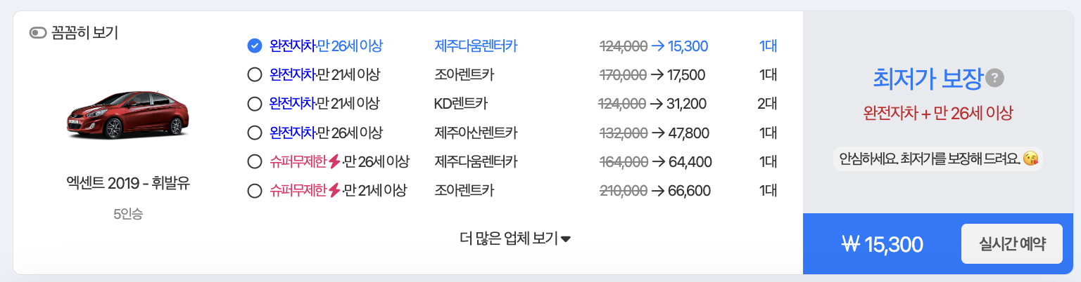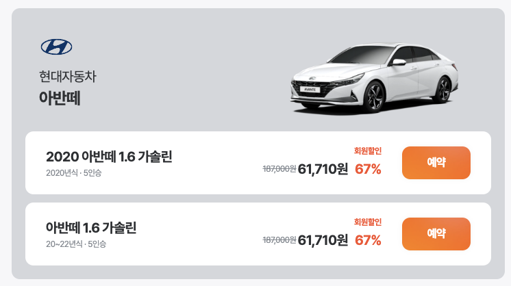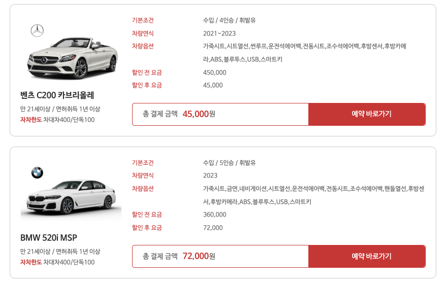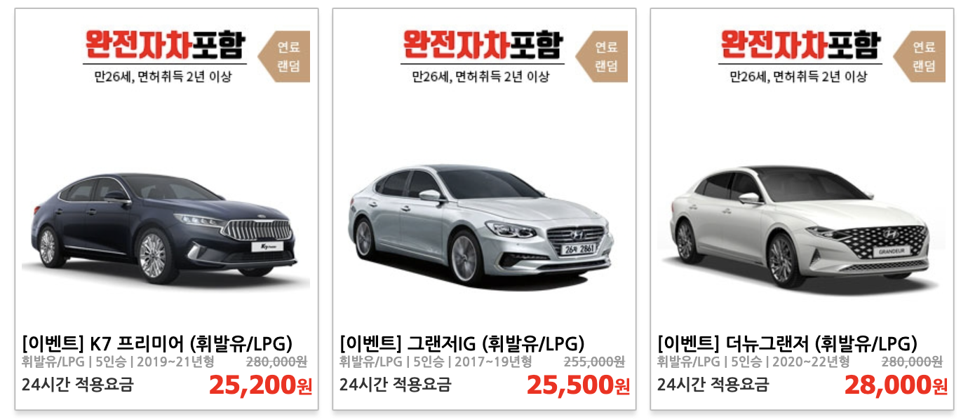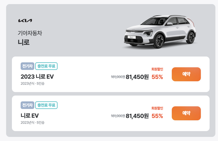 - 다양한 차량 종류와 모델을 선택할 수 있습니다. 승용차, SUV, RV, 전기차 등 원하는 차량을 쉽게 찾을 수 있습니다.