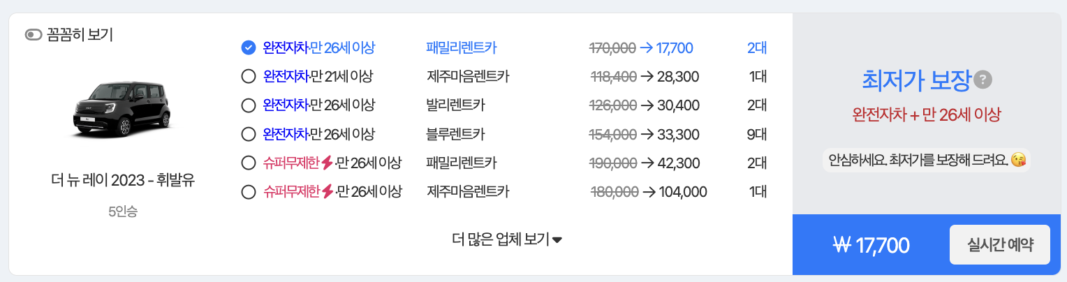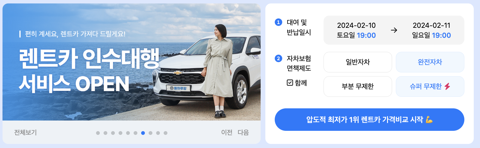 -차량 인수 및 반납 장소 제한: 돌하루팡은 제주시와 협약을 통해 제주시에서 운영 중인 렌트카 업체만 조회할 수 있습니다 . 따라서 성산이나 서귀포 등 다른 지역에서 차량을 인수하거나 반납하고 싶다면 추가 비용이 발생할 수 있습니다. 또한 공항에서 인수하거나 반납하는 경우에도 일부 업체에서는 셔틀버스를 운영하지 않아 택시비가 필요할 수 있습니다.