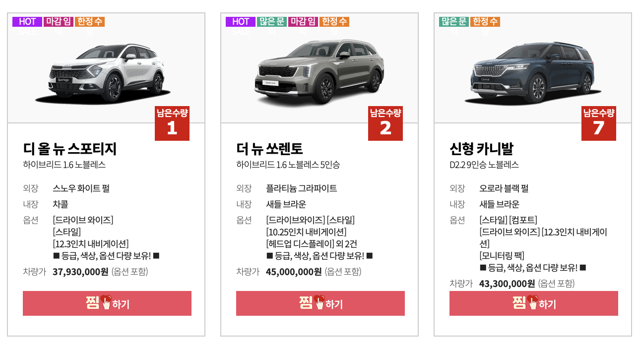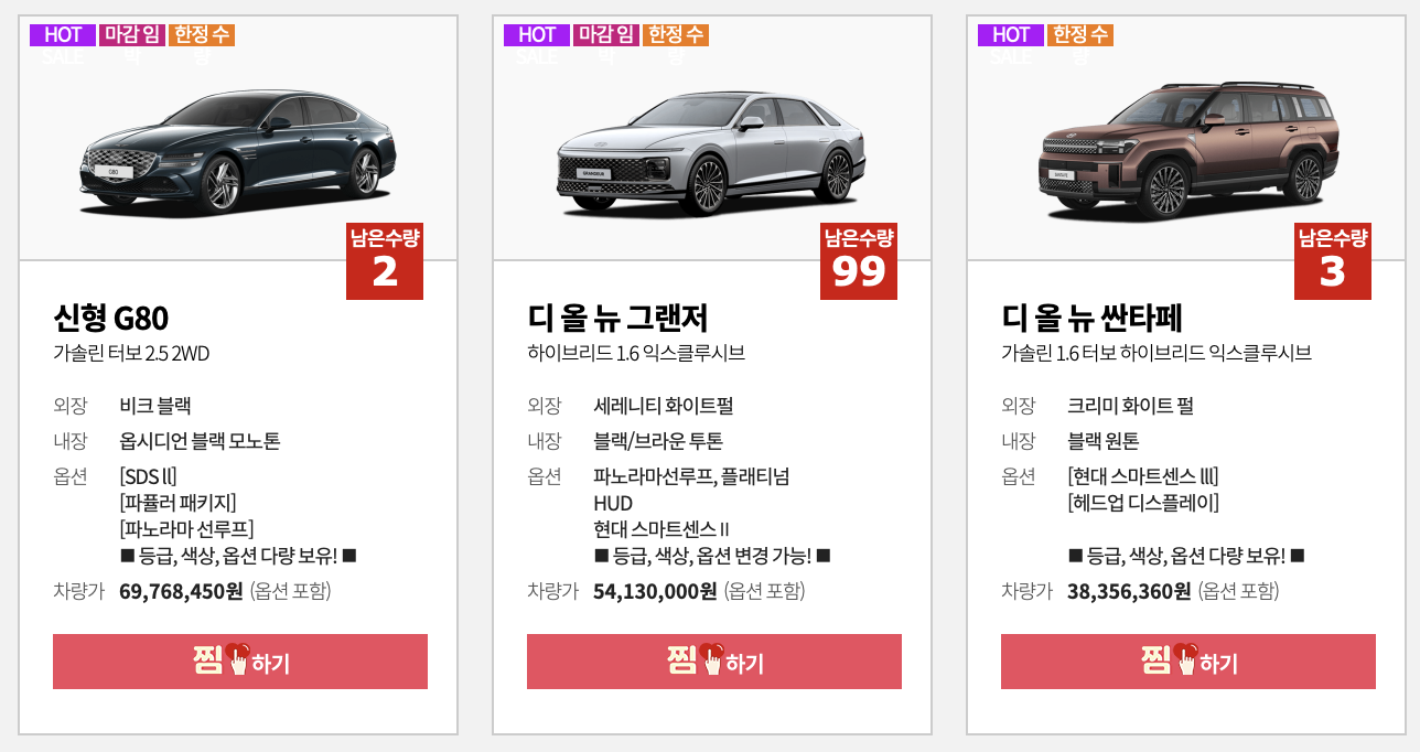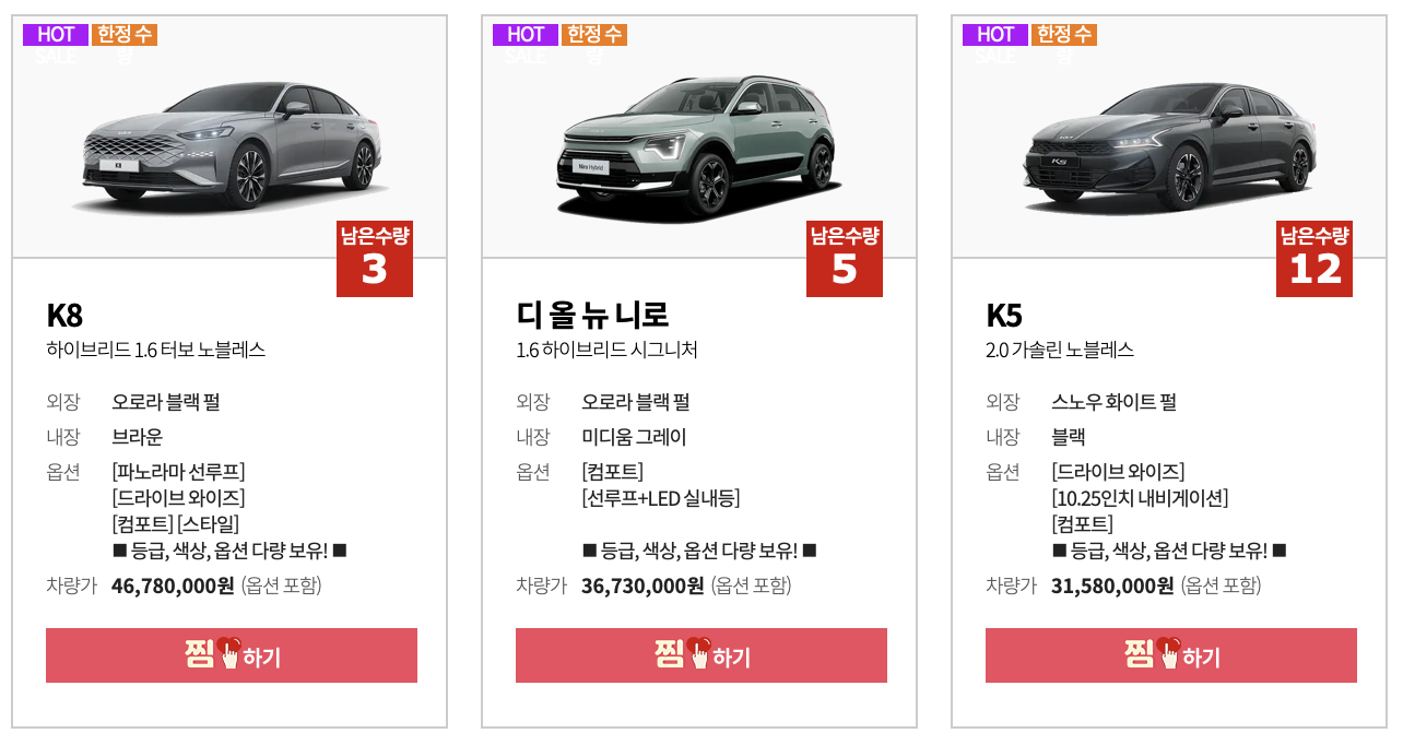 - 차량 선택: 원하는 차량 모델 및 옵션 확인