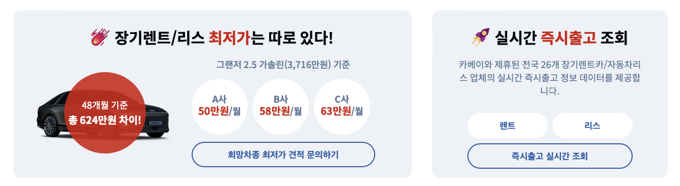 카베이는 국내 최초 장기렌터카 비교 플랫폼으로, 다양한 장점을 가지고 있습니다.