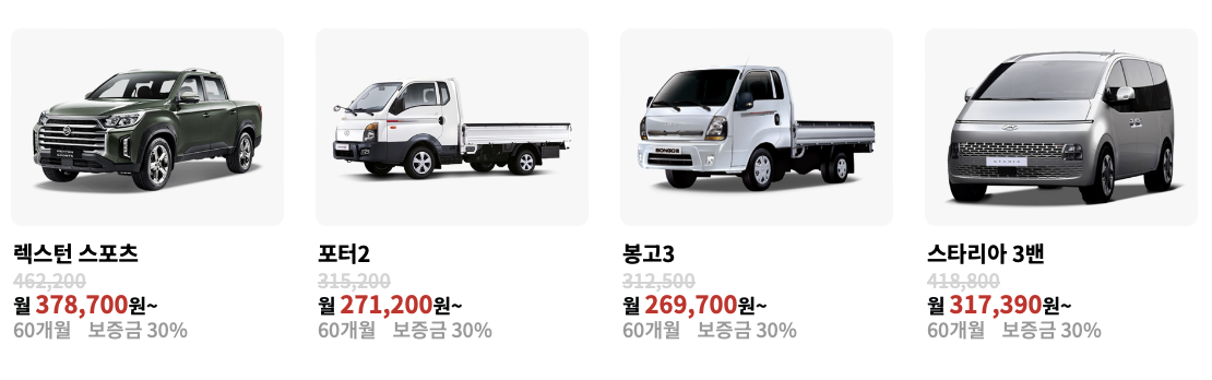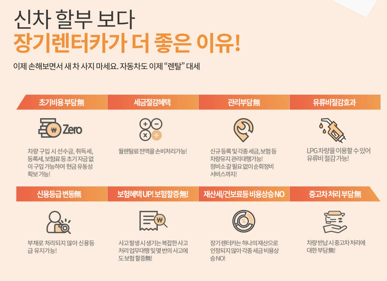 - 선수금 0원 옵션: 일부 차량 모델의 경우 선수금 없이 렌트가 가능합니다.