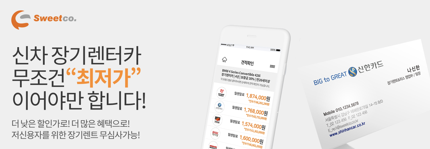 스윗카는 저렴한 가격, 신차 중심 차량, 편리한 서비스, 신뢰할 수 있는 브랜드 등 다양한 장점을 가진 장기렌터카 업체입니다.