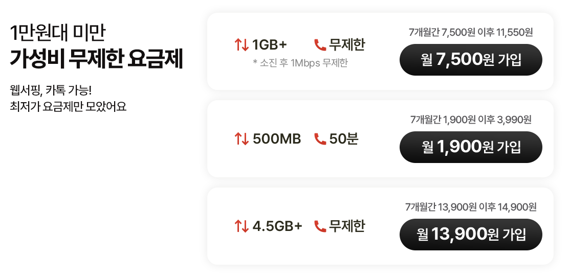 알뜰폰 요금제 비교