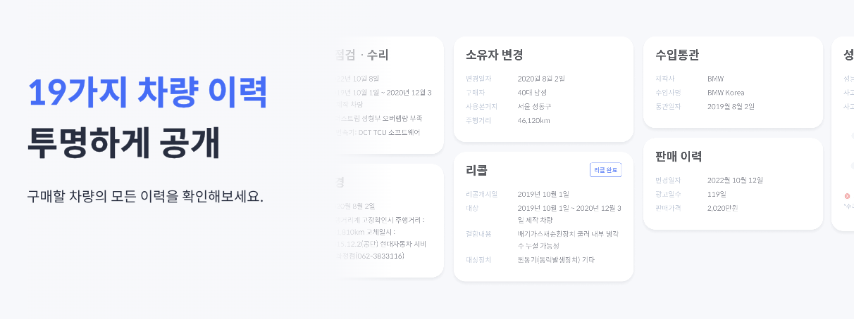 - 신뢰할 수 있는 중고차 정보: 저희는 모든 중고차를 전문가가 직접 검사하고, 상세한 사진과 설명을 제공합니다. 또한, 차량의 역사와 사고 이력을 한 눈에 볼 수 있는 카팩스 리포트도 함께 보내드립니다. 이렇게 하면, 원하는 차량을 쉽게 찾고, 안심하고 구매할 수 있습니다.