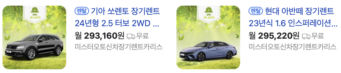 자동차 리스와 렌트의 차이점은? 장기리스 장기렌트 차종별 견적표