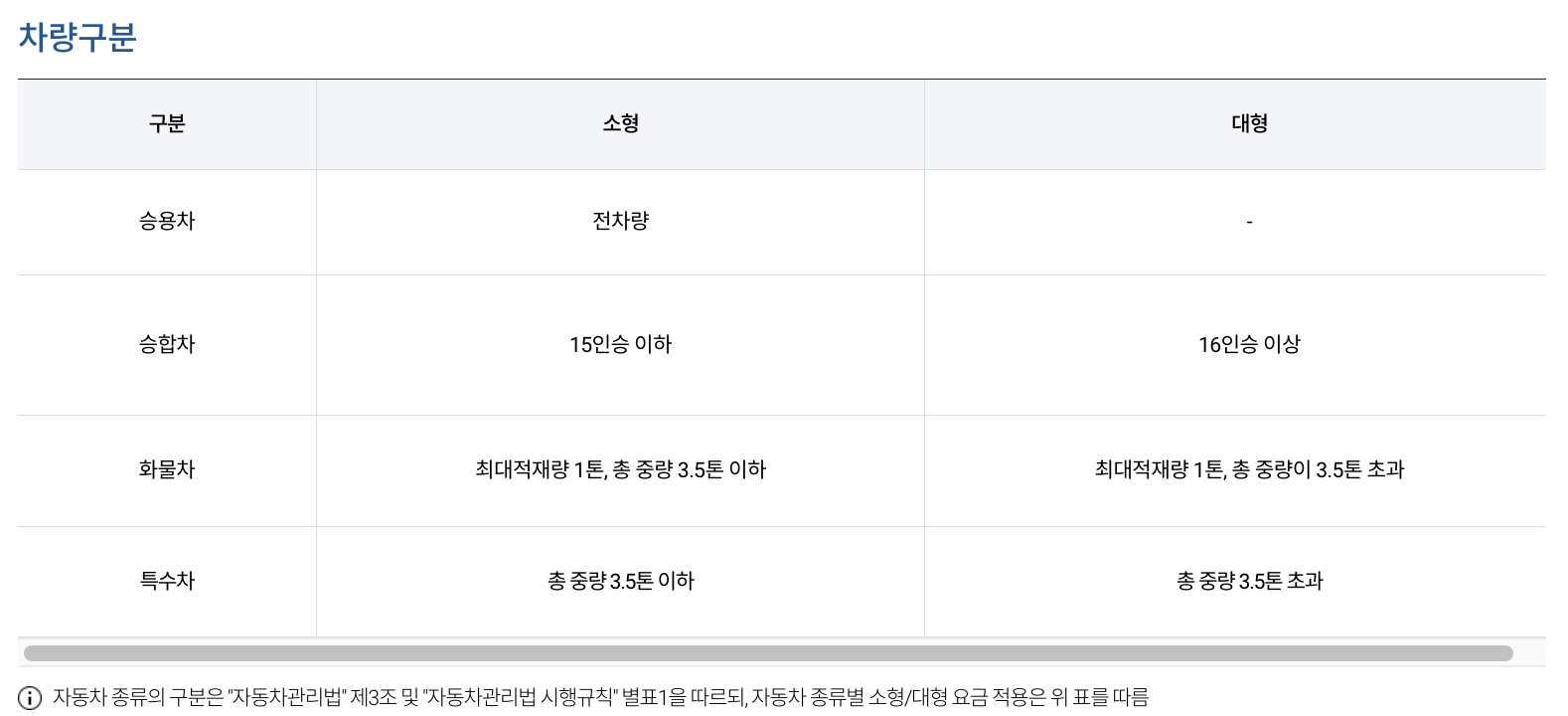 3. 차량 종류에 따라 주차 요금이 다르므로, 차량의 크기를 선택합니다.